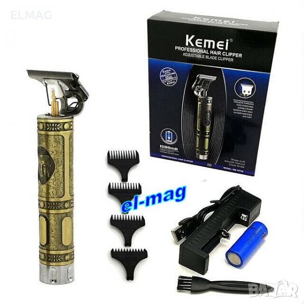 - Електрическа машинка за професионално бръснене и подстригване Kemei KM-1974A – метален корпус, винтидж дизайн, акумулаторна презареждаща се батерия!