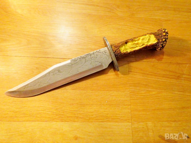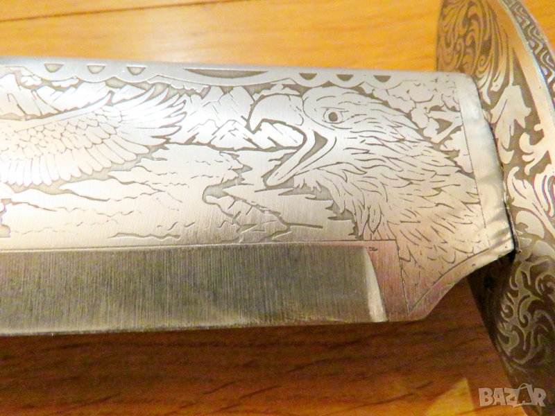 Ловен нож, масивен ловен нож с гравюри по острието Американски орел колекционерски нож