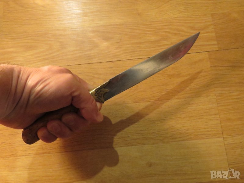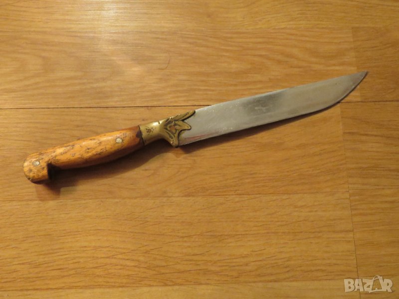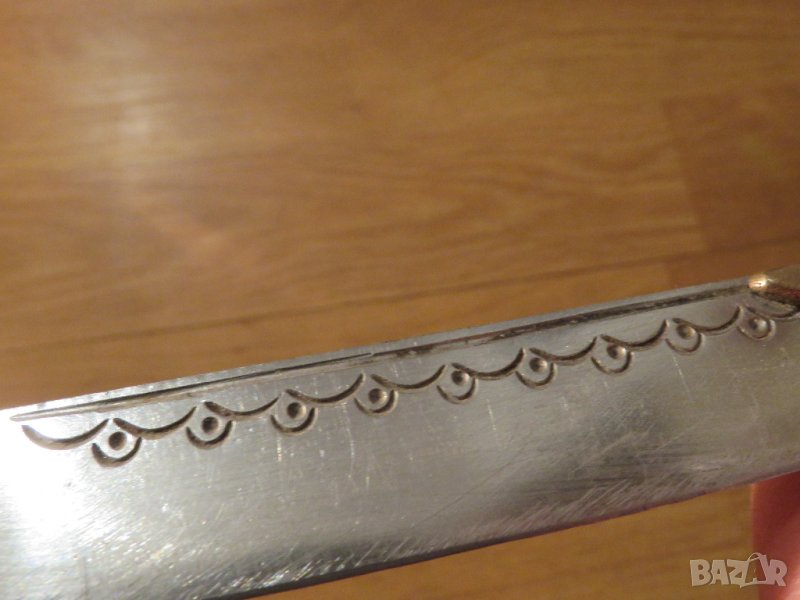 Старинен възрожденски нож с гравюри и бронзови орнаменти по острието - нож за ценители и колекционери .