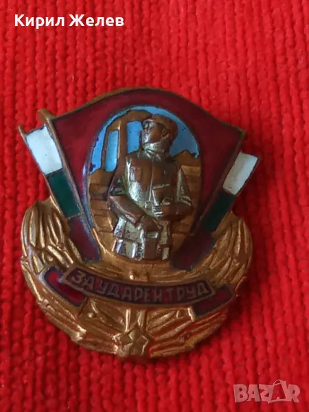 За УДАРЕН ТРУД Стара ЕМАЙЛИРАНА БРОНЗОВА с ПОЗЛАТА РЯДКА СОЦ НРБ ЗНАЧКА на ВИНТ ДИП КОМУНА 16841