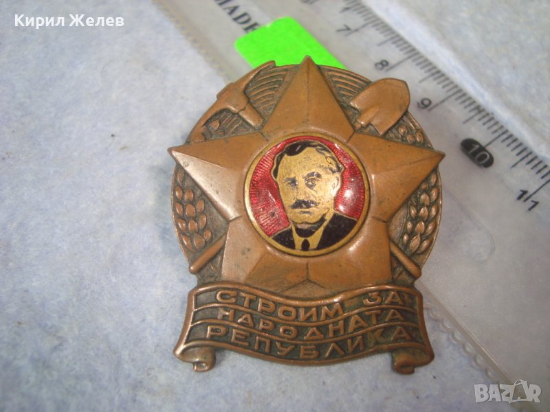 СТРОИМ за НАРОДНАТА РЕПУБЛИКА Стара МНОГО РЯДКА РАНЕН СОЦ НРБ ЕМАЙЛИРАНА МЕДНА ЗНАЧКА на ВИНТ 32606 → Обява 38465704
