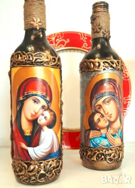 Арт бутилки, ръчна изработка със светец или дървото на живота.