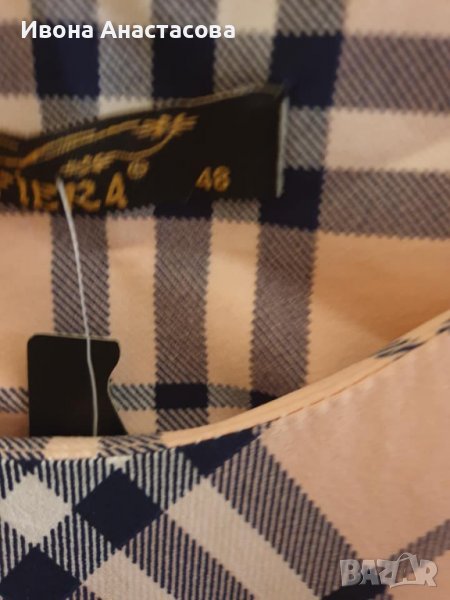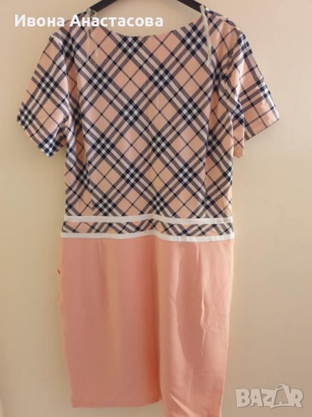 Нова рокля 48ми размер. 97% памук и 3% еластан. Дължина 105см. ГО 56см едностранно, Талия 50см, ханш 62см.