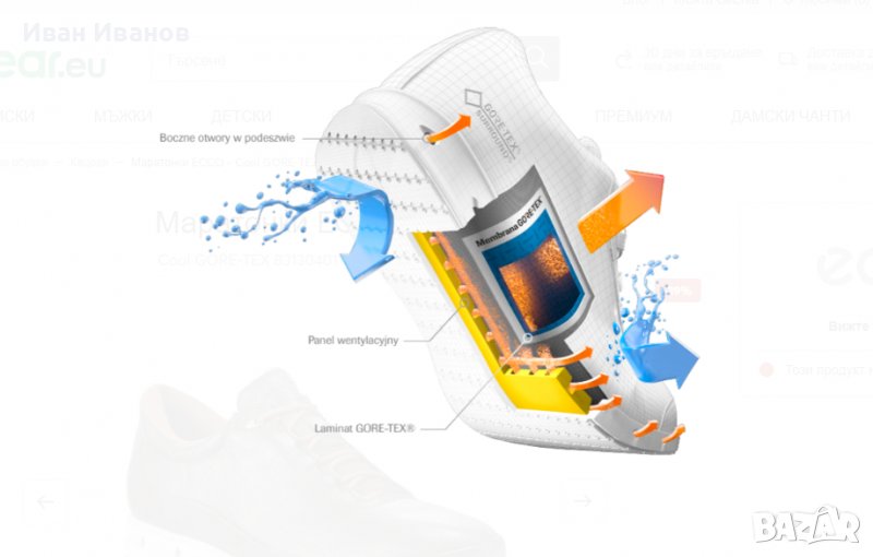 сникърси ,туристически обувки ECCO Cool GORE-TEX Mocha номер 43