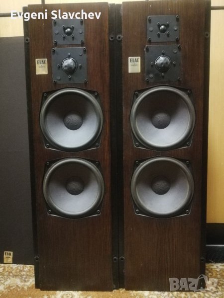 Големи, тежки, масивни колони на известната с качеството си немска фирма ELAC. Употребявани с леки следи от употреба. Страхотен мек и плътен бас и отчетливи среди и високи.