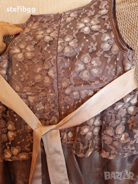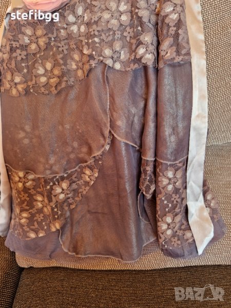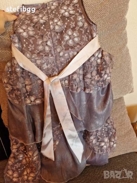 Сатенена сива рокля с дантела, 122 размер. В много добро състояние.