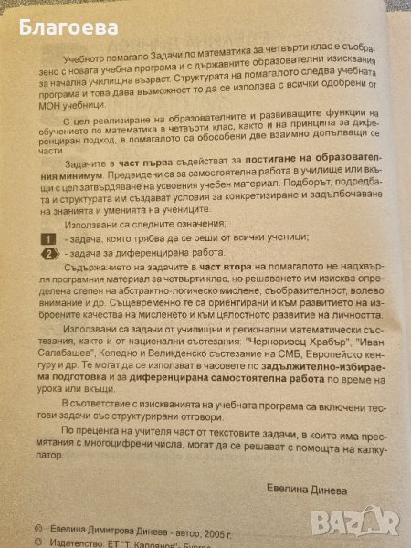 Задачи по математика за 4 клас, Евелина Динева, изд. "Калоянов". Учебното помагало е в добър вид.