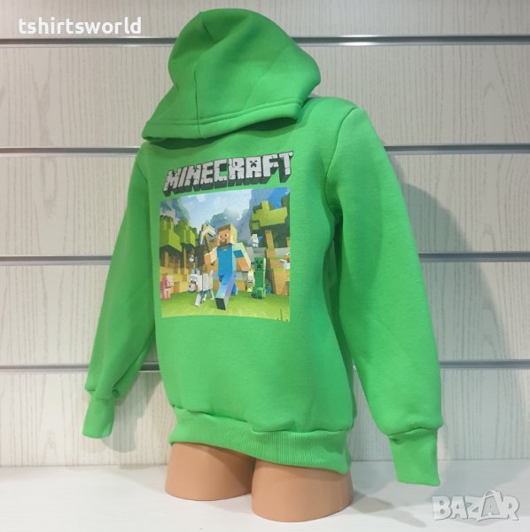 Нов детски суичър в зелен цвят с дигитален печат MINECRAFT