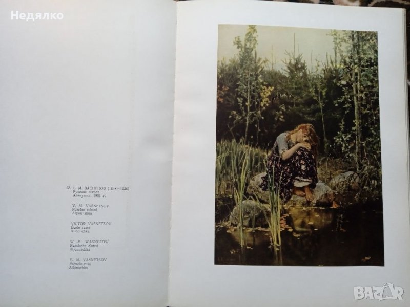 Уникален луксозен голям албум, издание на СССР от 1965г в тираж от само 30000 броя.34,6х27 см, дебели корици,80 картини на най-известните художници,върху основния дебел лист,отделно на фина гланцова препечатка са залепени само в горния край картините с размери повечето- 27 х19 см и 27 х 14,5, готови за рамкиране.