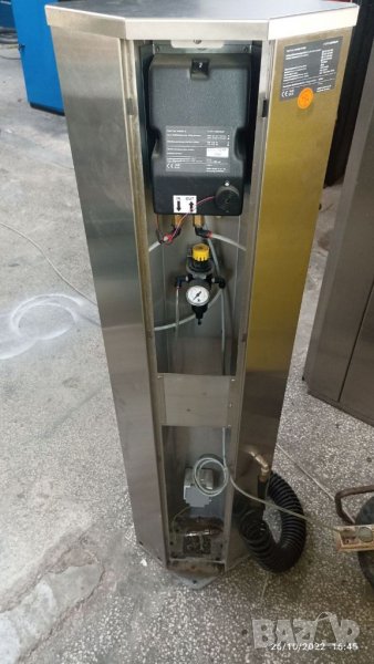 Колонка за въздух с дисплеи ,електронни дисплеи и пистолет за въздух.Може да се настрои от клиента желаното налягане и когато то се изпълни изключва автоматично.Колонката е от ИНОКС и е изключително красива и практична.