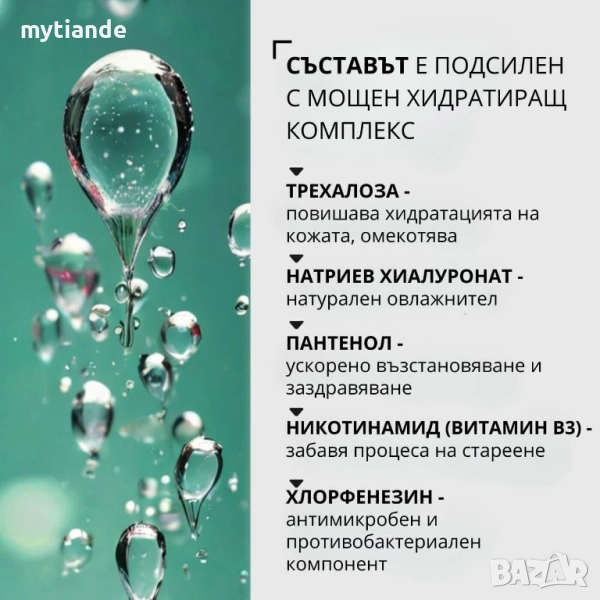 👉 Трехалоза – растителен полизахарид, който помага за запазването на влагата в кожата и изглажда бръчките. Прави кожата по-стегната и еластична.