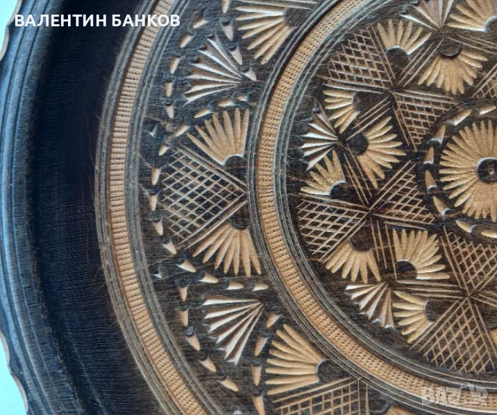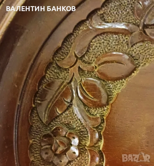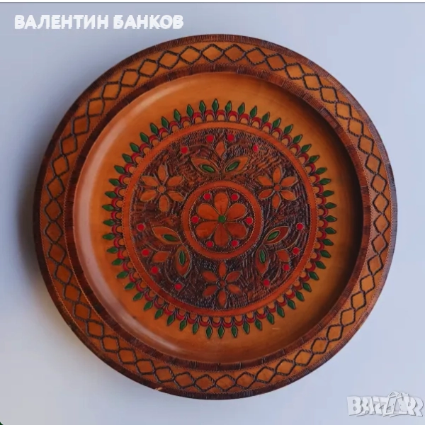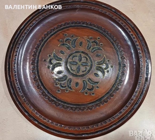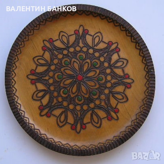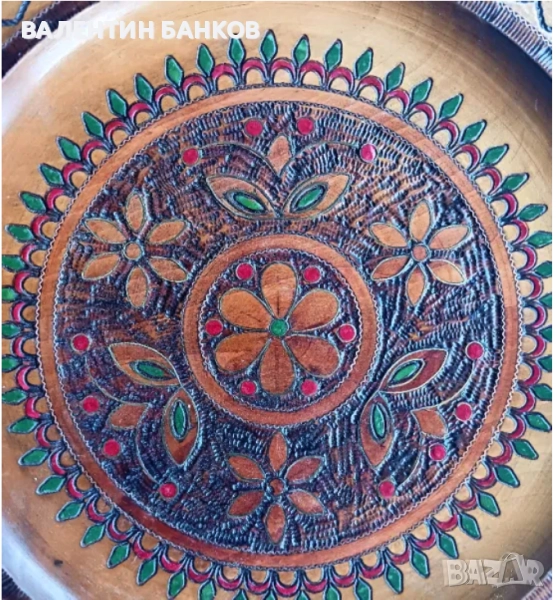 1-2 Дървена чиния с оцветена дърворезба 26,5см. Перфектна!!! - 24лв.