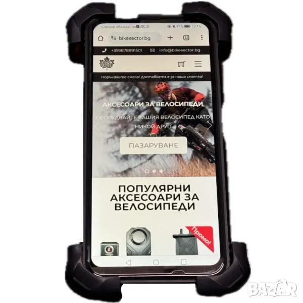Вместо да използваш телефона си, държейки кормилото само с една ръка, което е рисковано и опасно, можеш просто да монтираш тази стойка на кормилото за велосипеда си.