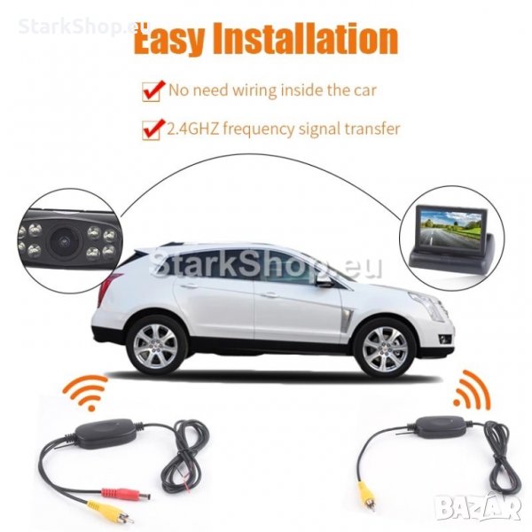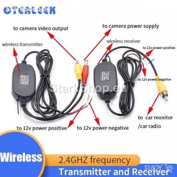 Приемник и безжичен предавателен модул за камера за задно виждане / паркиране. Устройството работи с електрическа инсталация на автомобил с напрежение 12V. Отличен инструмент, който ще позволи мониторът да бъде инсталиран в нашето превозно средство и да се използва като камера за паркиране. Това е много по-удобно решение от стандартния сензор за паркиране, използващ звукови сигнали. С нашия комплект сглобяването е изключително просто и паркирането в тесни пространства ще се превърне в детска игра.
