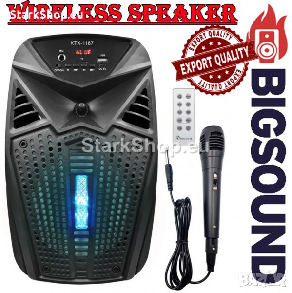 КАРАОКЕ TОНКОЛОНА С микророн РАДИО, БЛУТУТ, LED ДИСКО СВЕТЛИНИ, възпроизвежда файлове Мр3 формат от USB флашка или SD карта, ДИСТАНЦИОННО УПРАВЛЕНИЕ, МИКРОФОН (в комплекта). Можете да свържете мобилният си телефон, таблет или компютър посредством блутут и да слушате музика на вашата мобилна колонка напълно безжично.