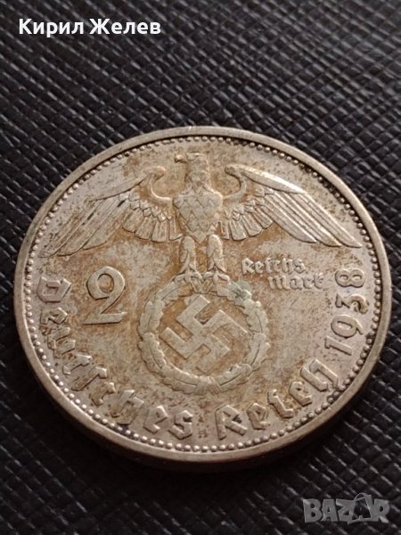 СРЕБЪРНА МОНЕТА 2 райхсмарки 1938г. Нацистка Германия Трети Райх с СВАСТИКА уникат 72021 → Обява 38491884