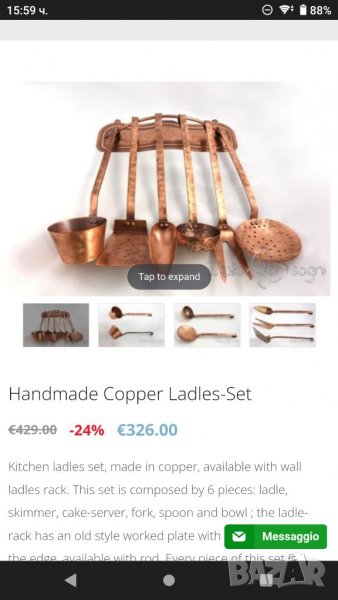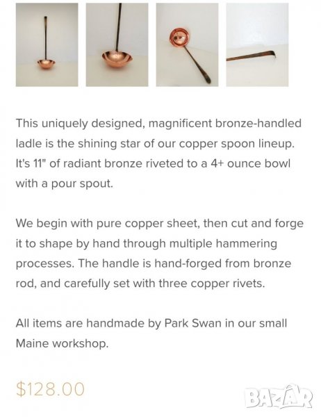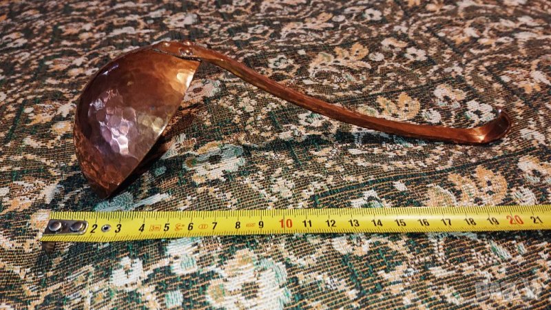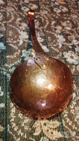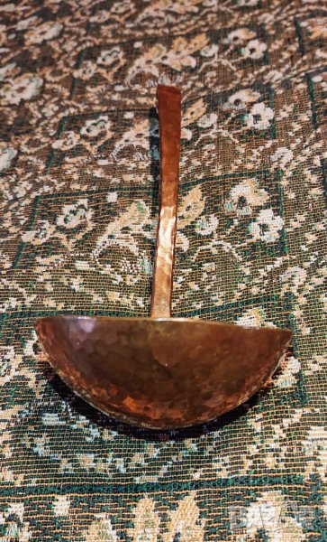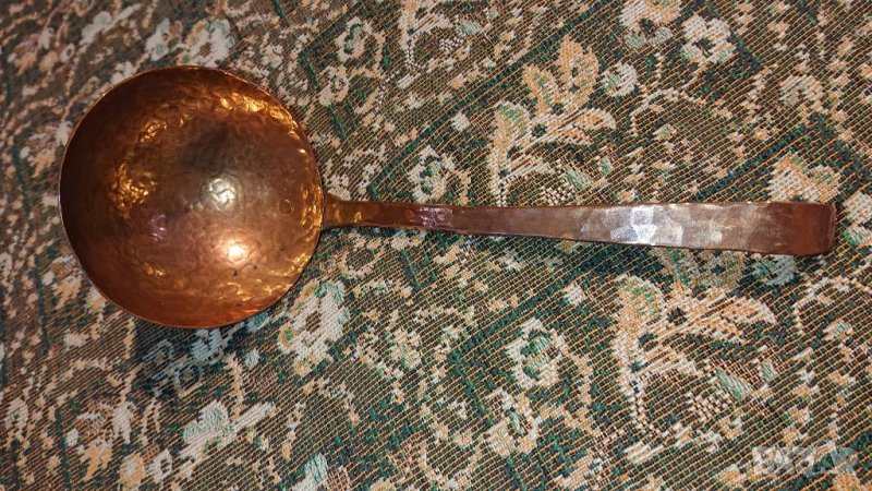 Черпакът е ръчна изработка. Масивен е, а не тънък колкото лист хартия. Процесът на изработка започва с чист дебел меден лист, който се изрязва и изковава на ръка чрез множество процеси. Дръжката също е ръчно изкована от масивен прът, а не огънат лист и внимателно поставена с три медни нита. Черпакът не е от България.