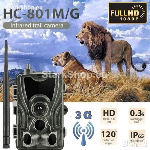Мощна Ловна камера HC-801M/G, която записва видео,снима и изпраща MMS и EMAIL. Водоустойчивата ловна Full HD камера HC-801M/G е идеалния вариант за охрана на имотите Ви или следене на ловния периметър. Подходяща е и за пчелини,овощни градини,следене на популацията на различни животни. Разполага с PIR сензор, който улавя движението пред обектива. Можете да зададете на устройство да снима само в определени часове, като през останалото време ще бъде неактивно. Кадрите ще бъдат с високо качество независимо дали снимате през деня или през нощта. Снимките и клиповете може да получите по два начина, като и за двата Ви трябва СИМ карта с активиран интернет. Първият е чрез MMS, за което трябва да активирате и MMS услуга от мобилния оператор. Вторият вариант е по-бюджетен и именно за това и по-предпочитан, можете да получавате кадрите по имейл. При този избор Ви трябва карта само с интернет. Устройството може да бъде нагласено да прави снимки, видео или и двете като ги редува. Има Time Lapse функция, която позволява да настроите интервали за правене на снимки съответно през 5, 30 или 60 мин. Всички кадри се съхраняват на SD карта с памет, която може да бъде с големина до 32 GB. Не на последно място е корпусът, който е водоустойчив, така няма да се притеснявате, че камерата може да се повреди при дъжд и влага. Също така е в камуфлажен цвят, който се слива много добре с природата.