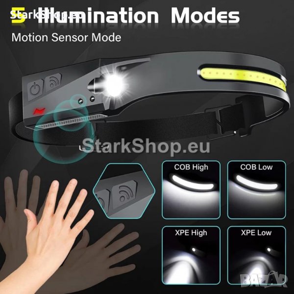 Удобен акумулаторен LED COB челник тип „лента“ с изключителна яркост и сензор за движение. Перфектен е за планински преходи, къмпинг, колоездене, лов, риболов и всякакви дейности, които изискват осветление. Благодарение на еластичната лента можете да го регулирате, така че да пасне идеално на главата ви.