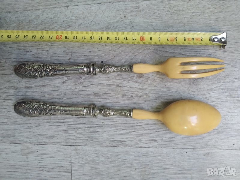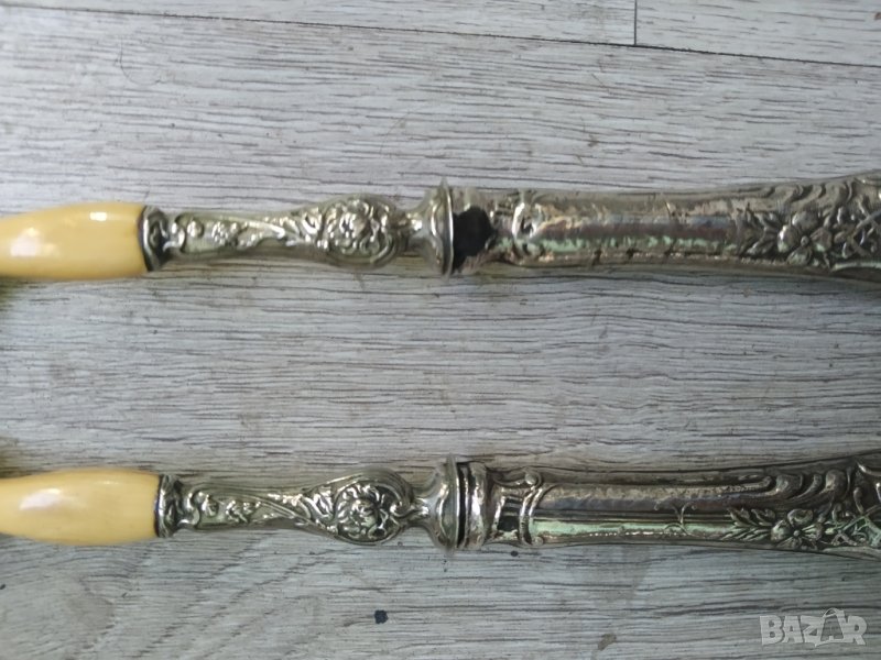 барокови прибори за сериране.сребърни дръжки,накрайници от кост ,внос от франция.