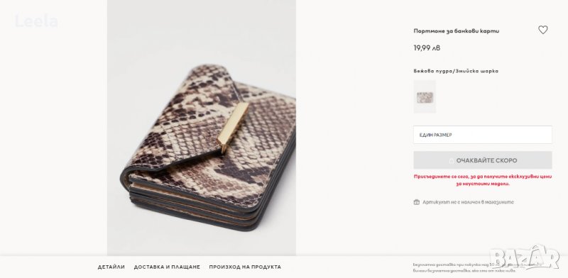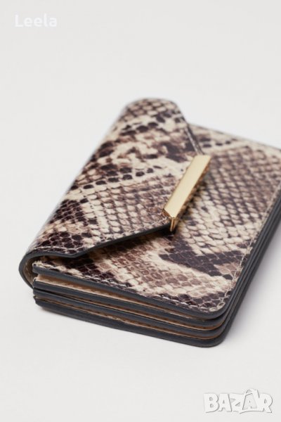 Картодържател/визитник H&M от имитация на кожа в животински принт с четири отделения за карти и капак със скрито копче тик-так.