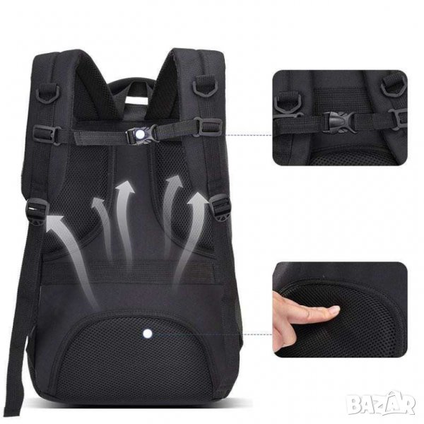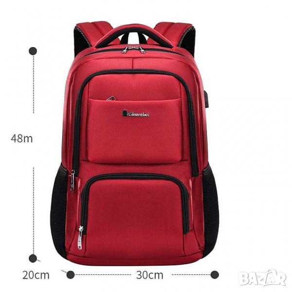 - супер функционална и удобна с четири основни отделения с ципове, едино голямо за лаптоп 15,6 - 17.3 инча + вътрешен джоб, средно което може да побере за други устройства или лаптоп до 14 инча с малки джобчета вътре в него и два по-малки джоба в най-издадената част на раницата с ципове.