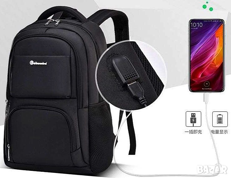 Раница за лаптоп с USB порт, бизнес раница за преносим компютър, черна раница за лаптоп 17.3 инча