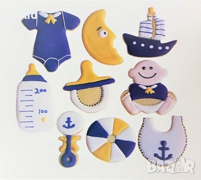9 бр големи бебешки резци форми форма за тесто сладки боди лигавник дрънкалка шише бебе луна лодка → Обява 38495953