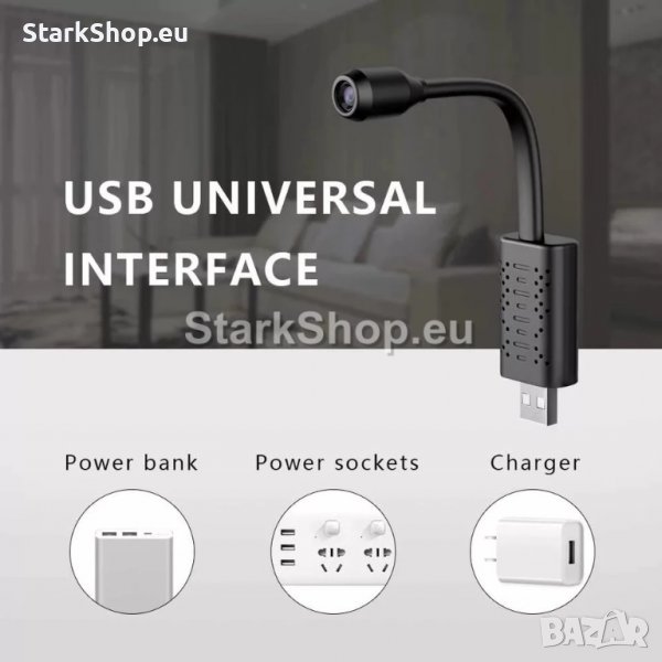 Супер малка безжична, гъвкава FullHD WiFi камера с USB захранване и вграден микрофон. Широк ъгъл на картината, Motion Detection – засичане и уведомление при движение на вашият мобилен телефон. Топ модел.