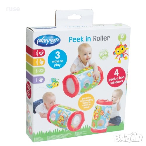 - прозорчето във валяка Playgro има забавен и ярък дизайн и насърчаващ разпознаването на цветовете