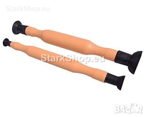 Комплект инструмент за ръчно шлайфане на клапани се състои от две пособия с дървени тела.