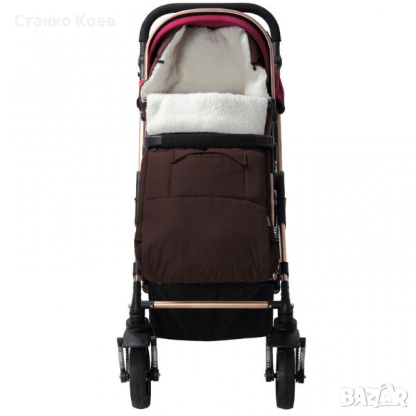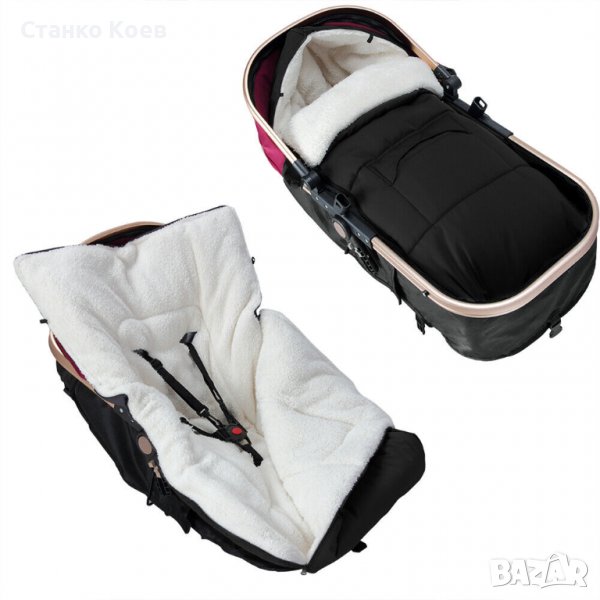 Дебелият материал поддържа вашето бебе приятно и топло дори в студено време. Интегрираните ленти против вятър гарантират, че вятърът не прониква в чувала за крака. Чувалът за крака също може да се пере при 30°C.
