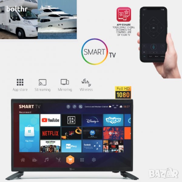 22 ИНЧА ANDROID SMART ТЕЛЕВИЗОР, DVB-T2/S2, КАРТА, DOLBY, FULL HD, WI-FI