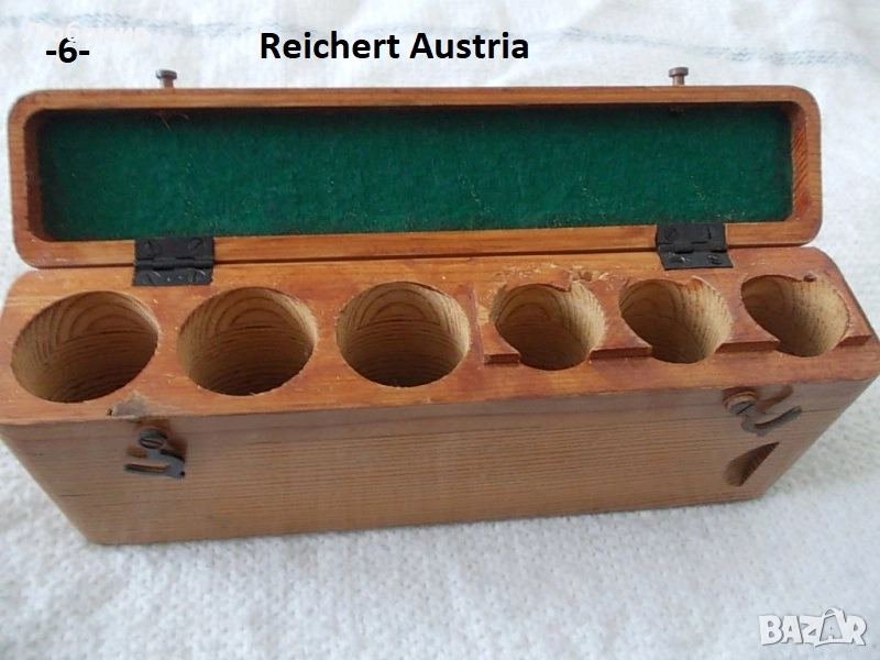 6. Старинна кутия обективи Reichert 198/82/42 мм - използвано - 25 лв.