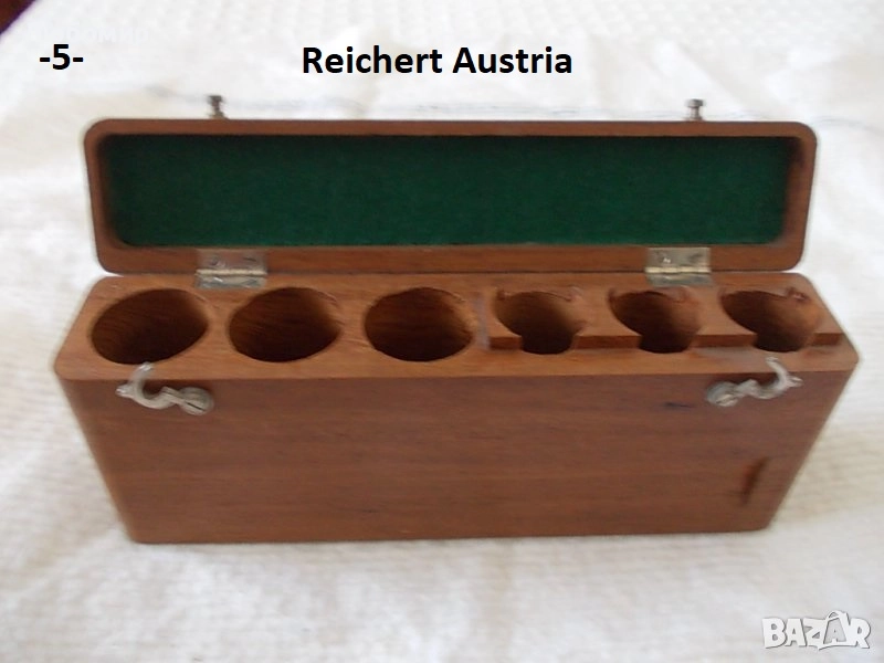 5. Старинна кутия обективи Reichert 198/82/42 мм - използвано - 25 лв.