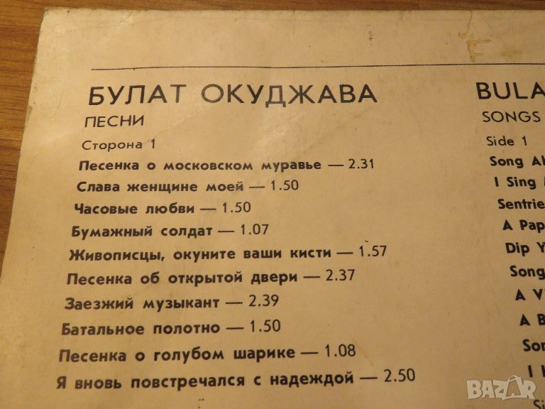 Грамофонна плоча - Булат Окуджава - издание 1980г. - за ценителите на руската музика Мирисът на винил, усещането че държиш грамофонна плоча на поне 30- тина години и се наслаждаваш на стара качествена музика - това прави една грамофонна плоча безкрайно ценна и ценнност за колекционери и ценители !