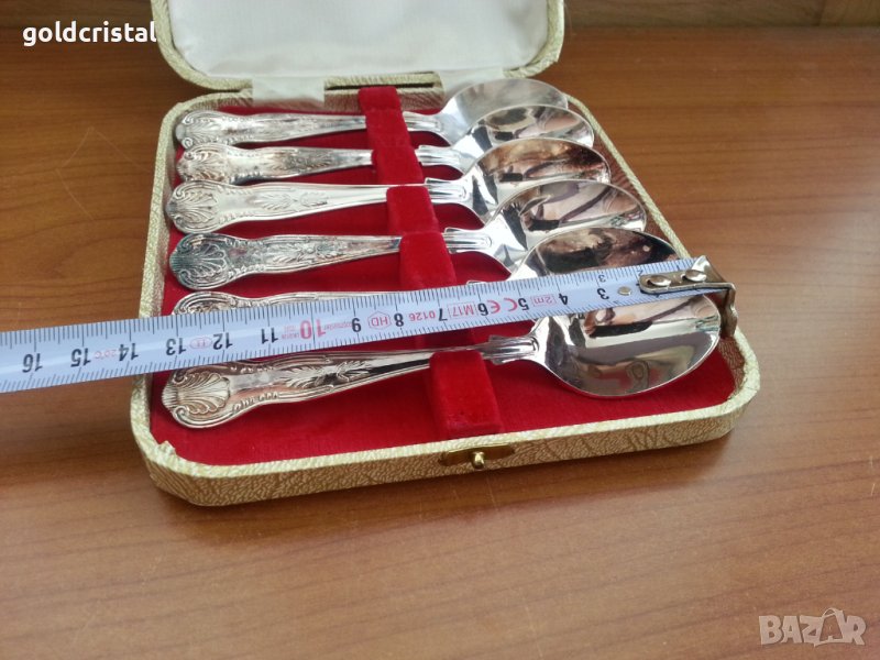 Английски посребрени лъжички в красива луксозна кутия неизползвани подходящи за прекрасен подарък сервиз комплект сет лот ретро арт декор винтидж колекция стари антикварни предмети обзавеждане за дома и семейството подходящи за подарък за ценители и колекционери