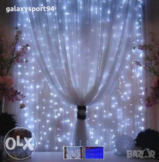 1)LED Завеса 3 х 3 м Студено бяла White 420лампи с Опция Снаждане