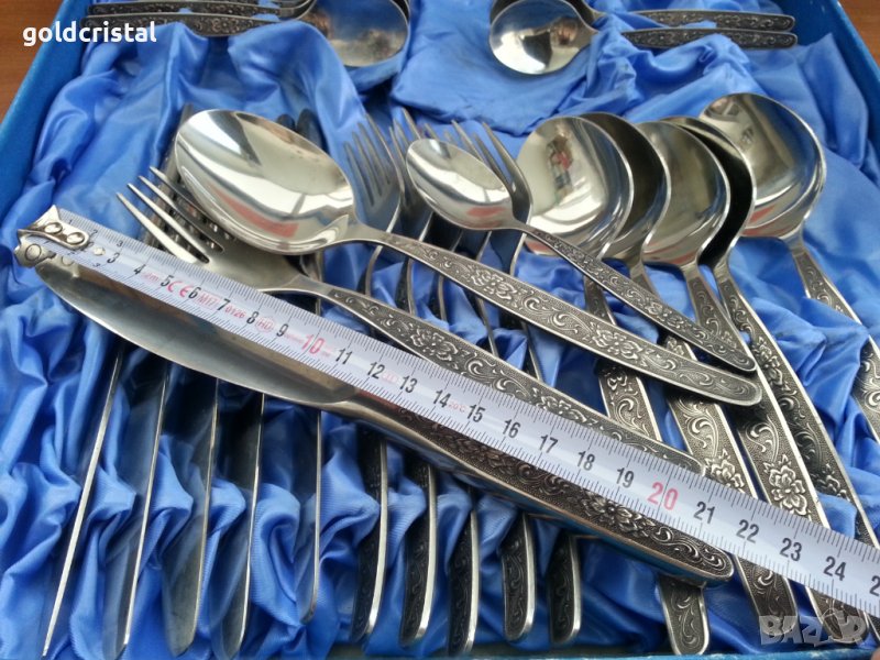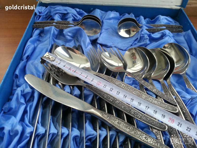 Руски прибори за хранене нови в кутия неръждаеми двустранно гравирани сервиз комплект сет лот ретро арт декор винтидж колекция стари антикварни предмети обзавеждане за дома и семейството подходящи за подарък за ценители и колекционери