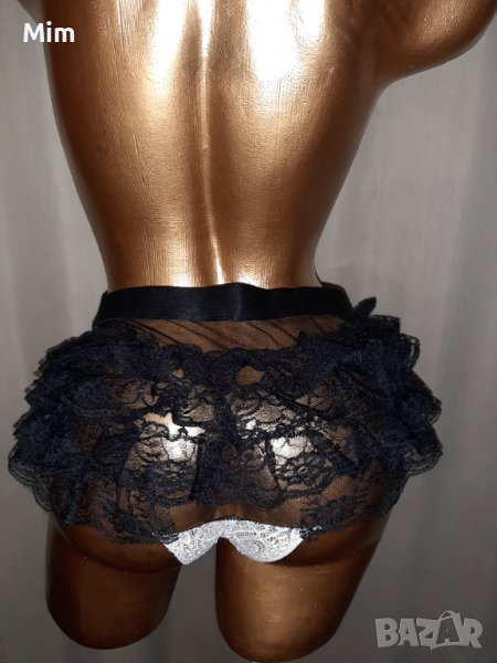 M/L Черни с бяло дантелени бикини с къдри → Обява 38505834