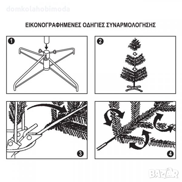 Коледна елха, бяла, с гъста зеленина и интегрирани 540 клонки. Има метална основа и лесен монтаж.