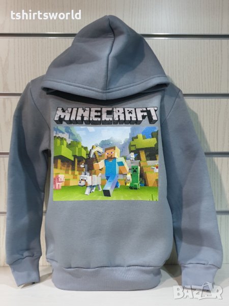Нов детски суичър в тъмносив цвят с дигитален печат MINECRAFT