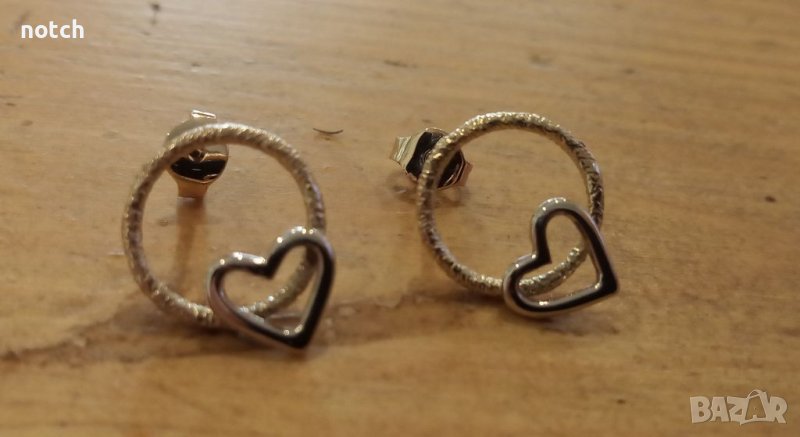 Кръгчето на обеците е жълто злато, а сърцето е бяло злато 14 карата. Могат да се изработят и от сребро. Диаметърът им е 1.2см.