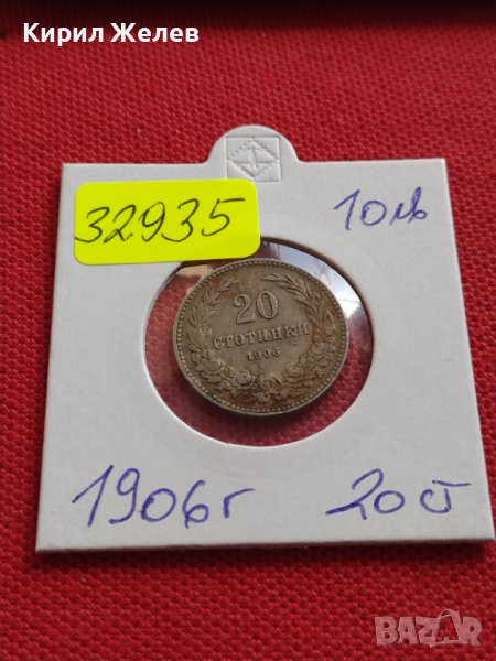 МОНЕТА 20 стотинки 1906г. КНЯЖЕСТВО БЪЛГАРИЯ УНИКАТ ПЕРФЕКТНО СЪСТОЯНИЕ за КОЛЕКЦИЯ 32935