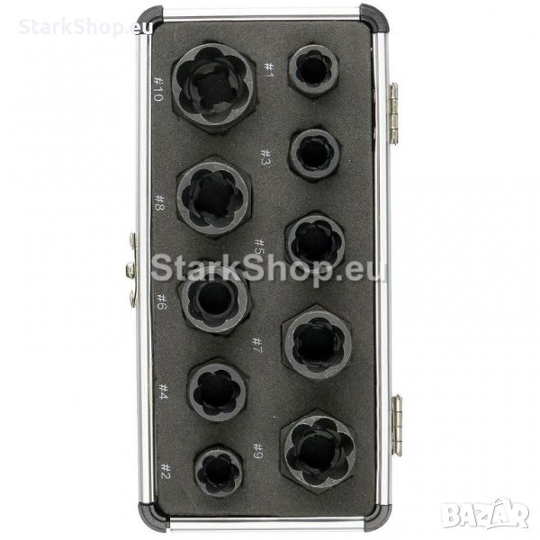 – 10 бр. екстрактори /за винтове с размери 9мм, 10мм, 11мм, 12мм, 13мм, 14мм, 15мм, 16мм, 17мм, 19мм/