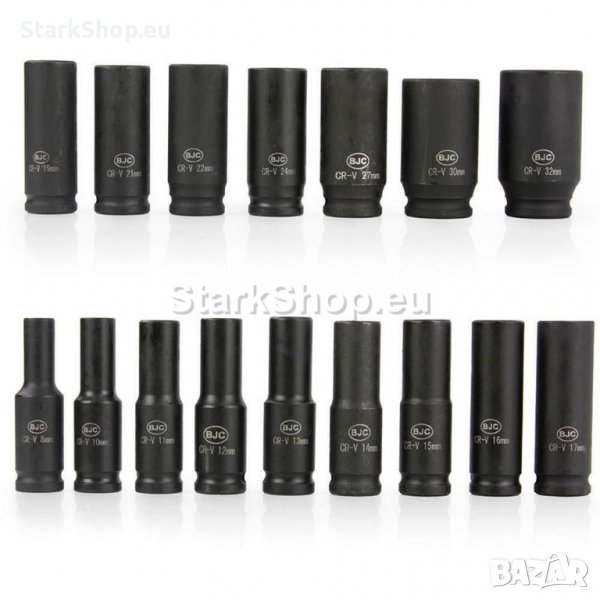 – Вложки 1/2 (14 бр.): 8 мм, 10 мм, 11 мм, 12мм, 13 мм, 14 мм, 15 мм, 16 мм, 17 мм, 19 мм, 21 мм, 22 мм, 24 мм, 27 мм, 30 мм, 32 мм