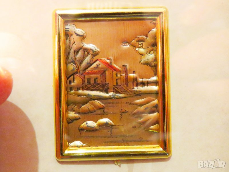 Старинна сребърна картина рисувана върху сребърно фолио - река и къщичка - с маркировка за сребро