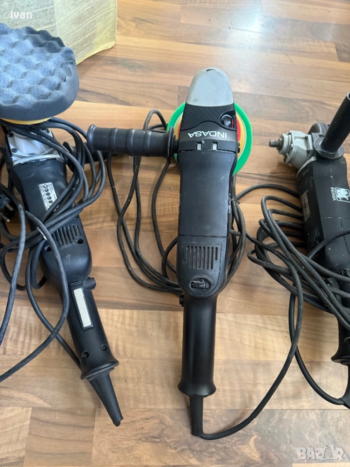 Полираща машина Indasa в добро състояние. Работи безотказно. Ползвал съм я редовно. Машината е едно към едно с Рупес. Има 6 степени на оборотите. Цената е за 1 брой. Червената е Milwaukee на цена 350лева. Всички машини имат глави, а някой от тях дори и гъби на тях.