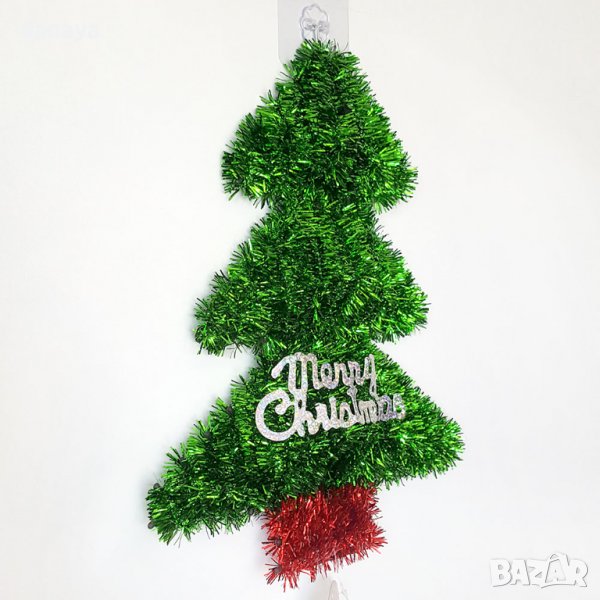 Обемна коледна елхичка с надпис Merry Christmas. Красива коледна декорация за стена или врата, направена от гирлянд и пластмасова основа. Стои красиво и „коледно“, където и да я поставите.