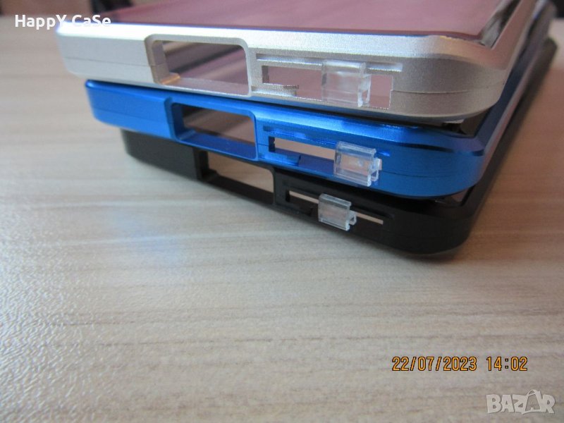 ВНИМАНИЕ: Кейсовете са с щифт за заключване който предотвратява отваряне на кейса при силен удар. Заради заключващия механизъм горния капак на кейса трябва да се отвори вертикално за да се отстрани и извади или сложи телефона в кейса. При затворен кейс не се опитвайте да отворите капака странично (хоризонтално) защото това може да доведе до счупване на стъклата на кейса. След като се постави телефона в кейса, горния капак първо влиза в заключващи пластини в горната част на кейса след което се пуска вертикално надолу докато се затвори и се заключва с щифта в долната част на кейса.